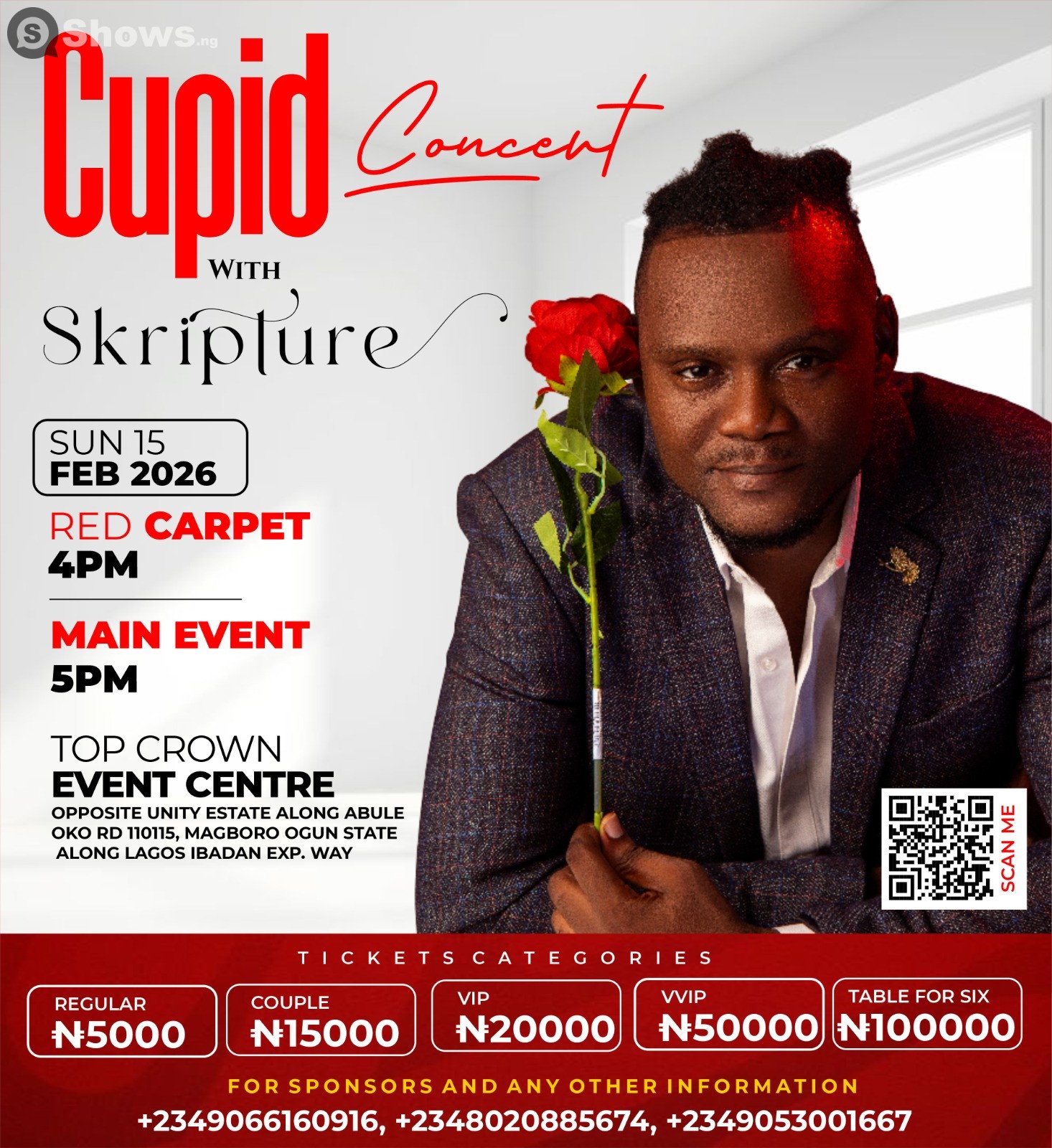 This Valentine’s Day, elevate your celebration beyond the ordinary. Cupid Concert with Skripture: Love Reborn is a masterfully curated experience designed for those who demand prestige, comfort, and soul-stirring entertainment. Hosted at the prestigious Top Crown Event Center, we are bringing a high-tier production to the heart of the Magboro/Sparklight axis. We offer a world-class night out while eliminating the stress, providing a serene sanctuary for your love story.
