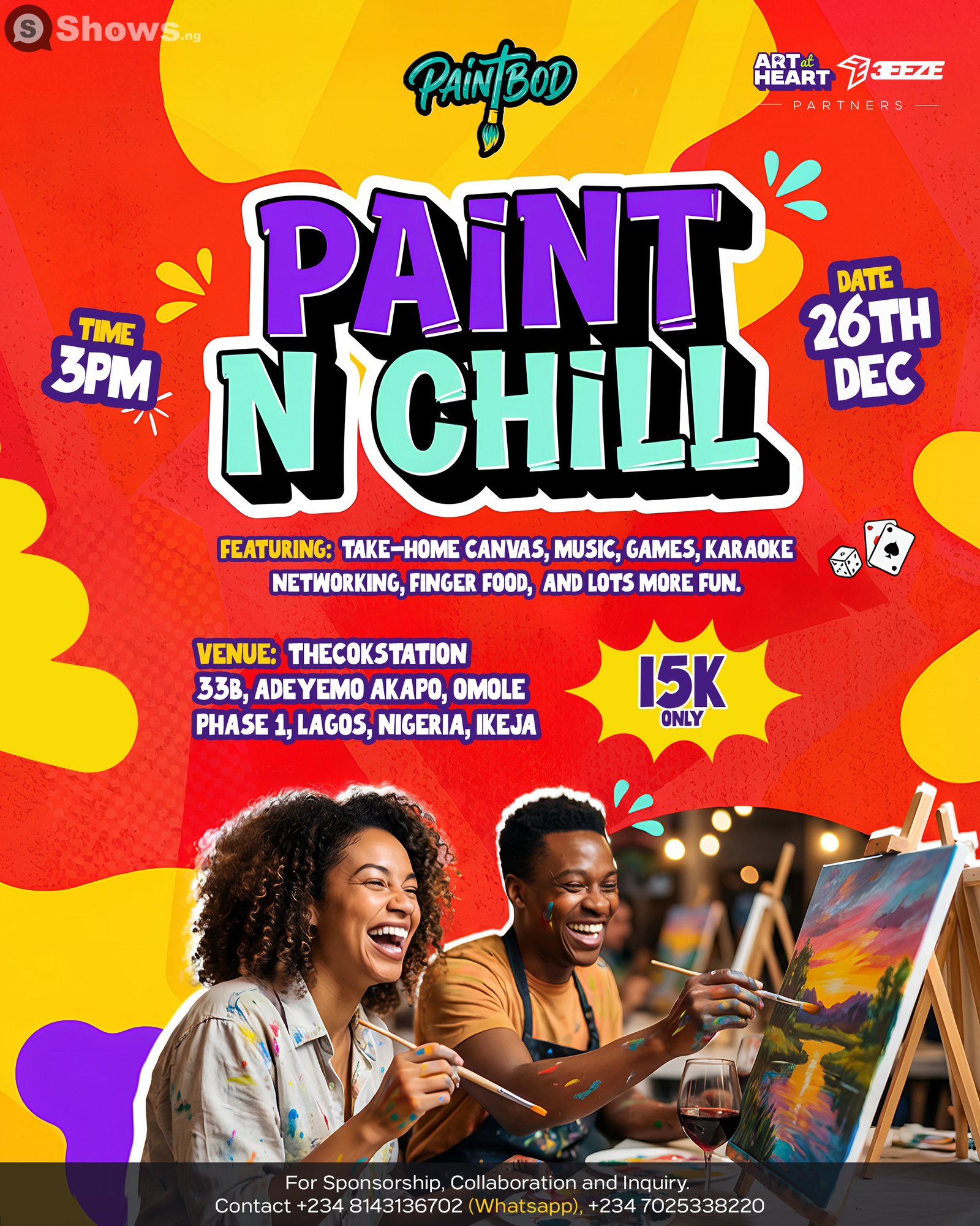 Welcome to Paint N Chill — a standout moment you won’t want to miss. It’s simple: chill vibes, casual energy, and time to reconnect with people who matter. Whether you're coming for the conversation or just some company, this space is yours. You bring the mood, we’ll bring the comfort. Let’s just hang. Save the date: Friday, December 26, 2025. Things get started around 3:00 PM. , located at 33b, Adeyemo Akapo, Omole Phase 1, Lagos, Nigeria, Ikeja , Ikeja. This hangouts is built with intention, energy, and something truly special. Come ready for an experience that will stay with you long after it's over.