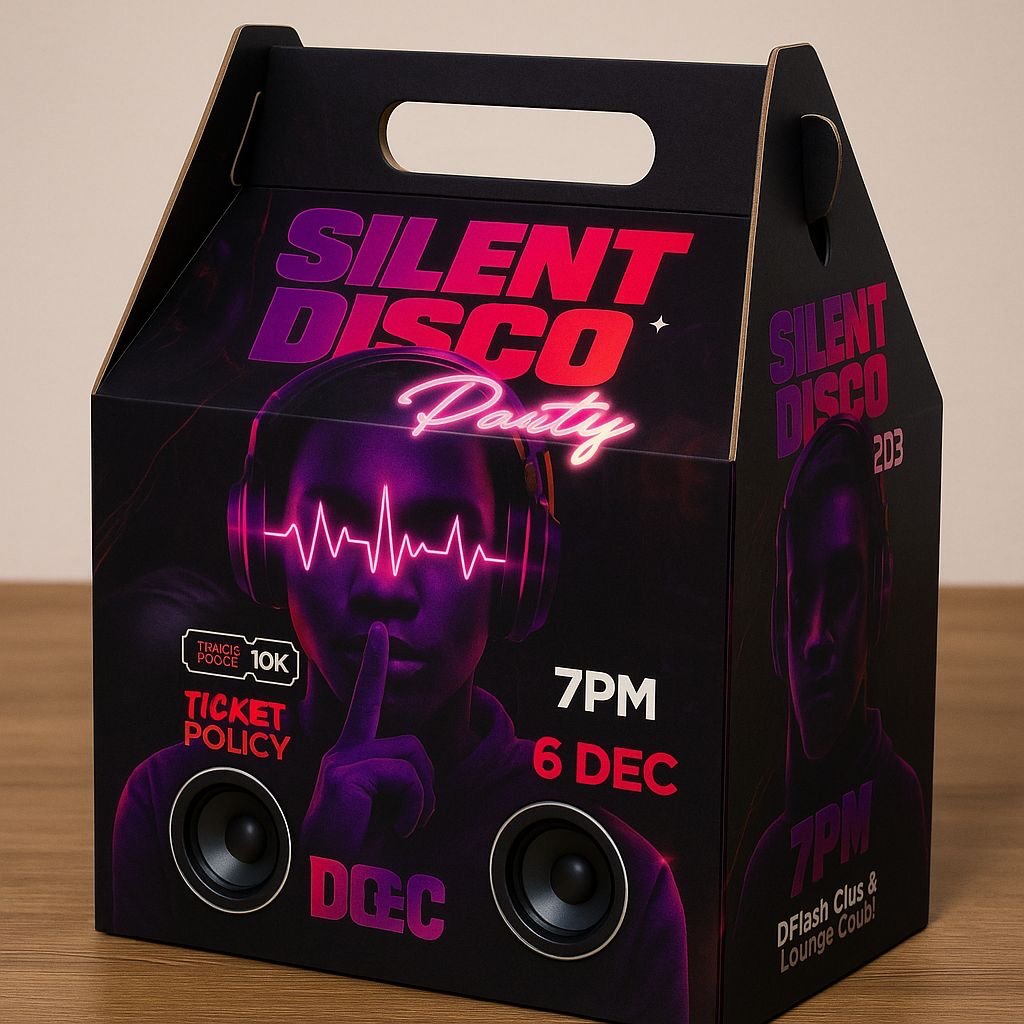 Join us for the biggest Silent Disco Party of 2025! Experience two top DJs, one hypeman, and over 200 glowing headsets lighting up the night. December 6th, 8PM till dawn at Dflash Lounge & Club, Osubi. Brought to you by Celuvia events — good vibes only, where sound meets style!