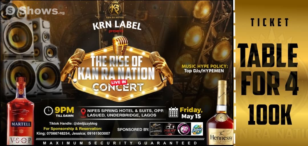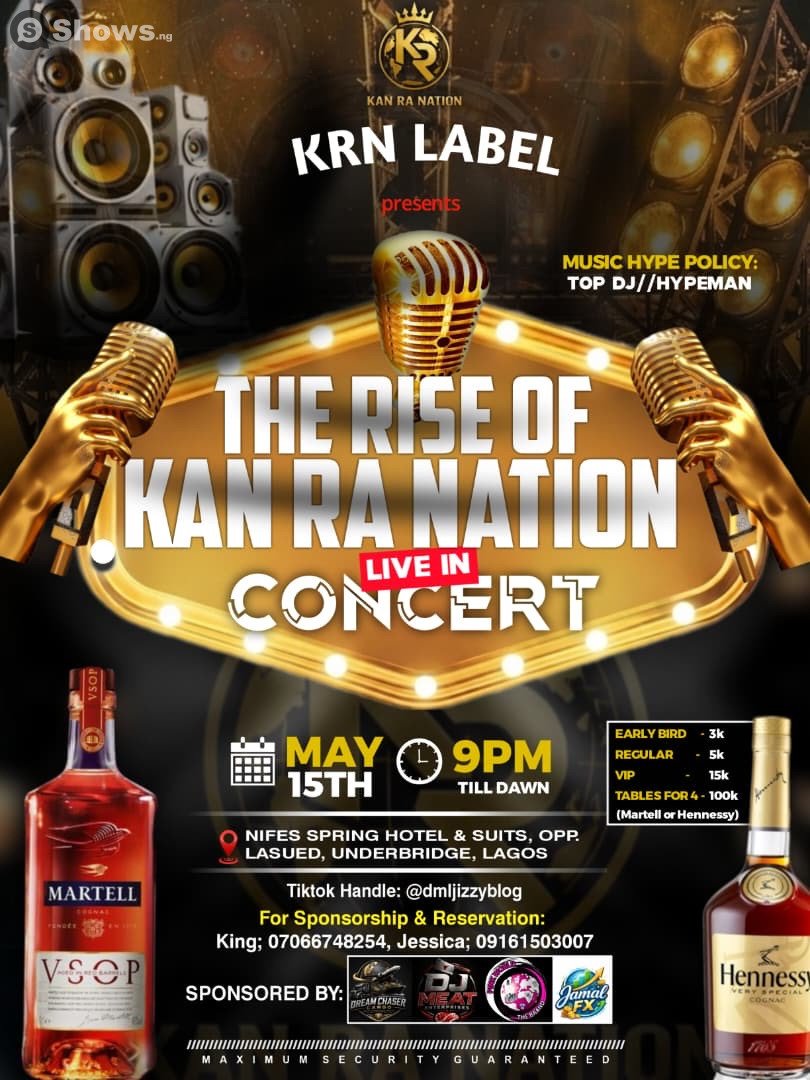 Welcome to The Rise Of Kan Ra Nation Live In Concert - a standout moment you won’t want to miss. Lose yourself in a soundscape curated for dreamers, dancers, and diehard music fans. From electrifying headliners to underground gems, this is the kind of lineup people talk about long after the lights go down. Whether you’re swaying under the stars or headbanging by the front stage, the energy will be unforgettable. Save the date: Friday, May 15, 2026. Things get started around 9:00 PM. The event is happening at Nifes Spring Hotel & Suits, located at Opp Lasued Under Bridge, Badagry Express Way, Lagos, Nigeria , Lagos. This music is built with intention, energy, and something truly special. Come ready for an experience that will stay with you long after it's over.
