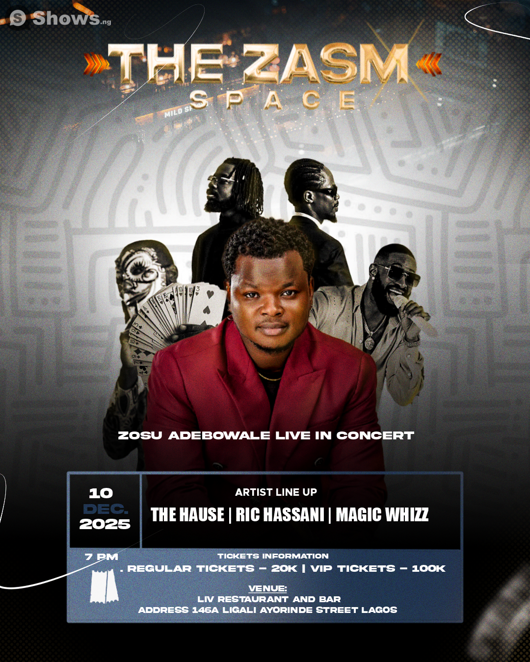 THEZASM SPACE is an immersive Afro‑soul showcase that fuses contemporary soul with deep African rhythms, visual art, and a vibe‑centric atmosphere. The night feels like a sonic journey through Zosu Adebowale Semawon’s (Z.A.S MUSIC) universe—where smooth vocals, live instrumentation, and modern production meet Lagos street energy with artist like Ric Hassani, The HAUSE, Magic whizz and more
