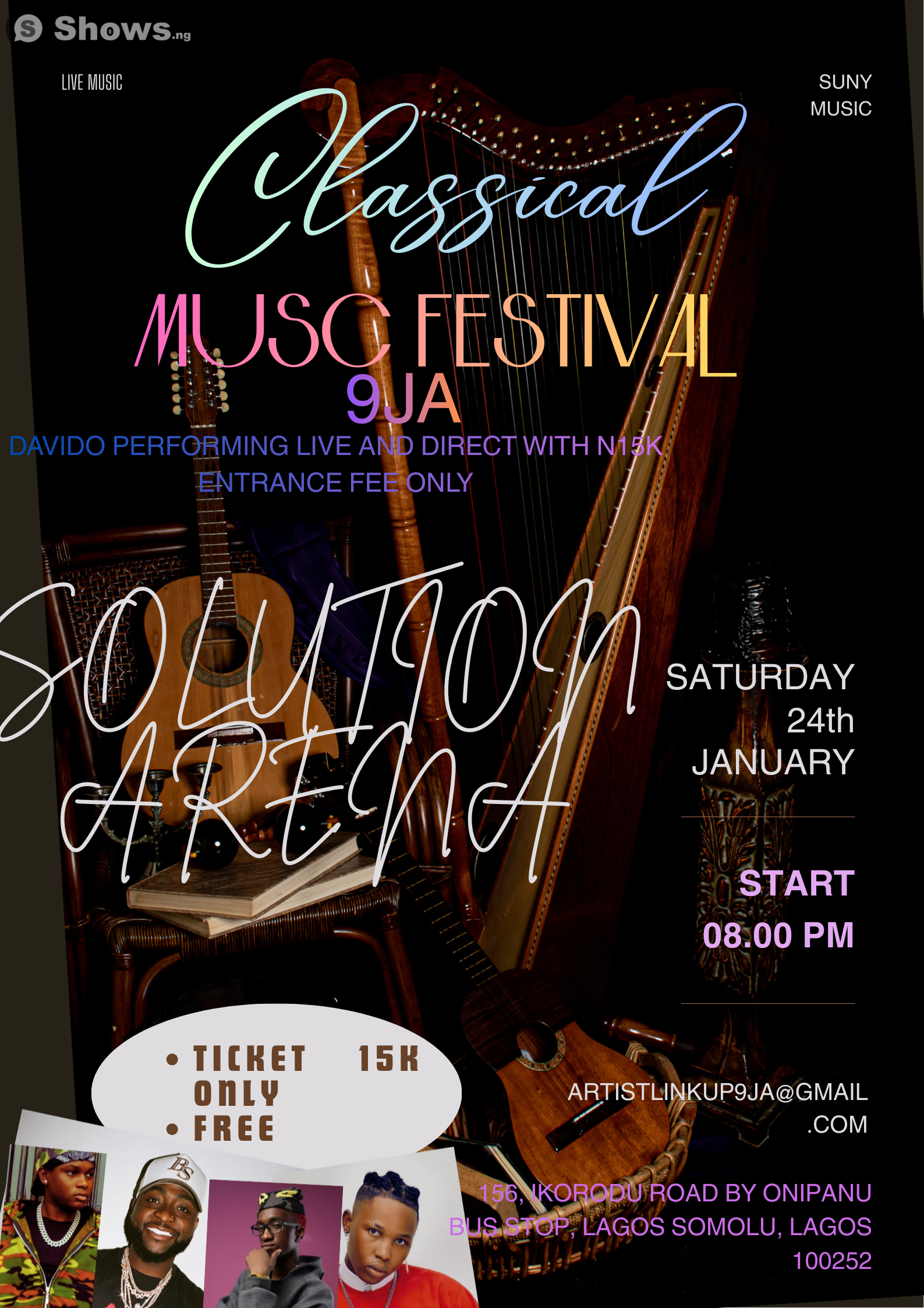 Welcome to Classic Music Festival — a standout moment you won’t want to miss. Lose yourself in a soundscape curated for dreamers, dancers, and diehard music fans. From electrifying headliners to underground gems, this is the kind of lineup people talk about long after the lights go down. Whether you’re swaying under the stars or headbanging by the front stage, the energy will be unforgettable. Save the date: Saturday, January 31, 2026. Festivities begin at 8:00 PM. The event is happening at Solution Arena, located at 156, Ikorodu Road By Onipanu Bus Stop, Lagos Somolu, Lagos 100252, Ikeja. This music is built with intention, energy, and something truly special. Come ready for an experience that will stay with you long after it's over.