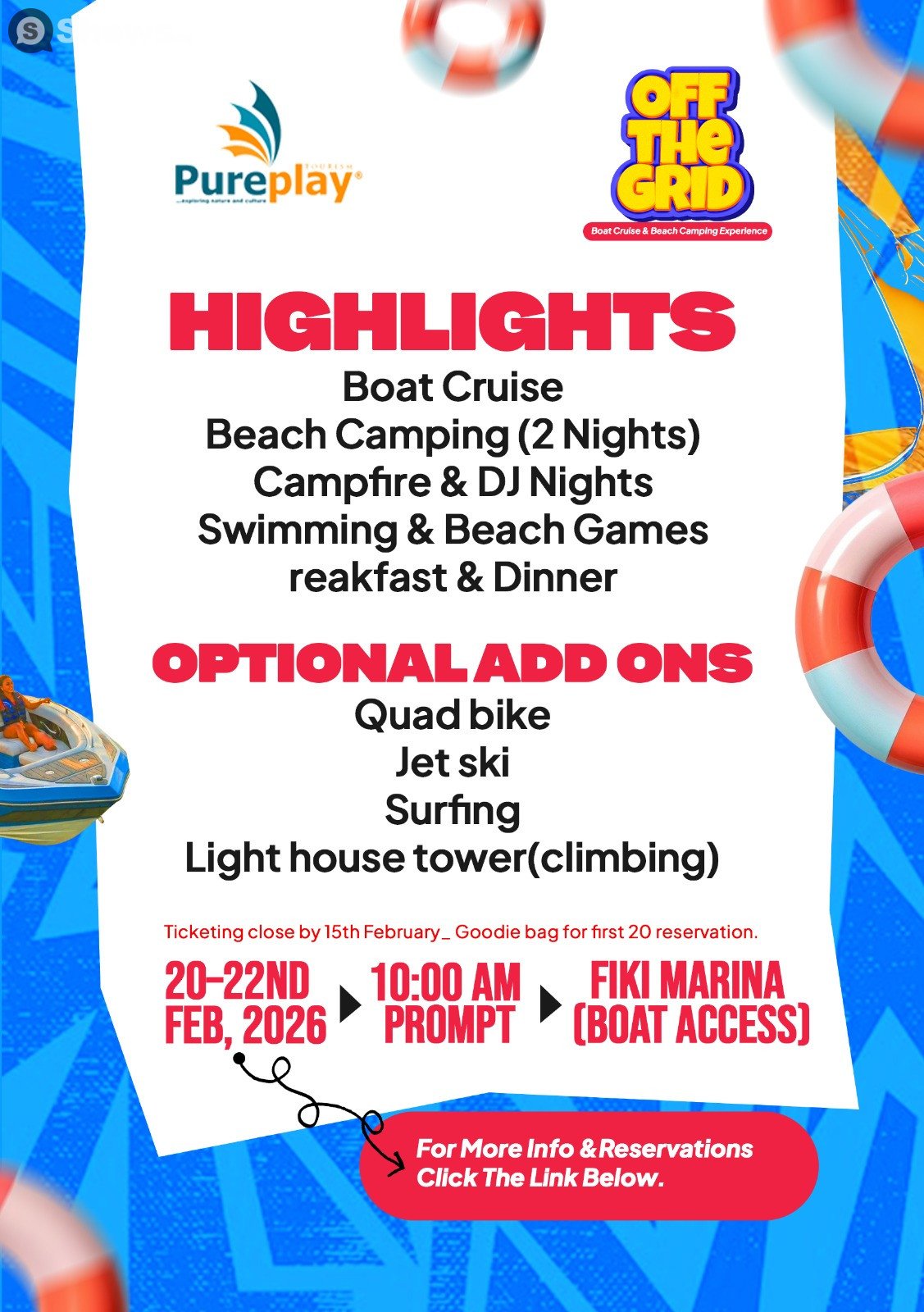 February 20, 2026. Be sure to arrive by 10:00 AM. The boat cruise and beach camping is happening at Takwa Bay, located at Takwa Bay, Island . This social is built with intention, energy, and something truly special. Come ready for an experience that will stay with you long after it's over.