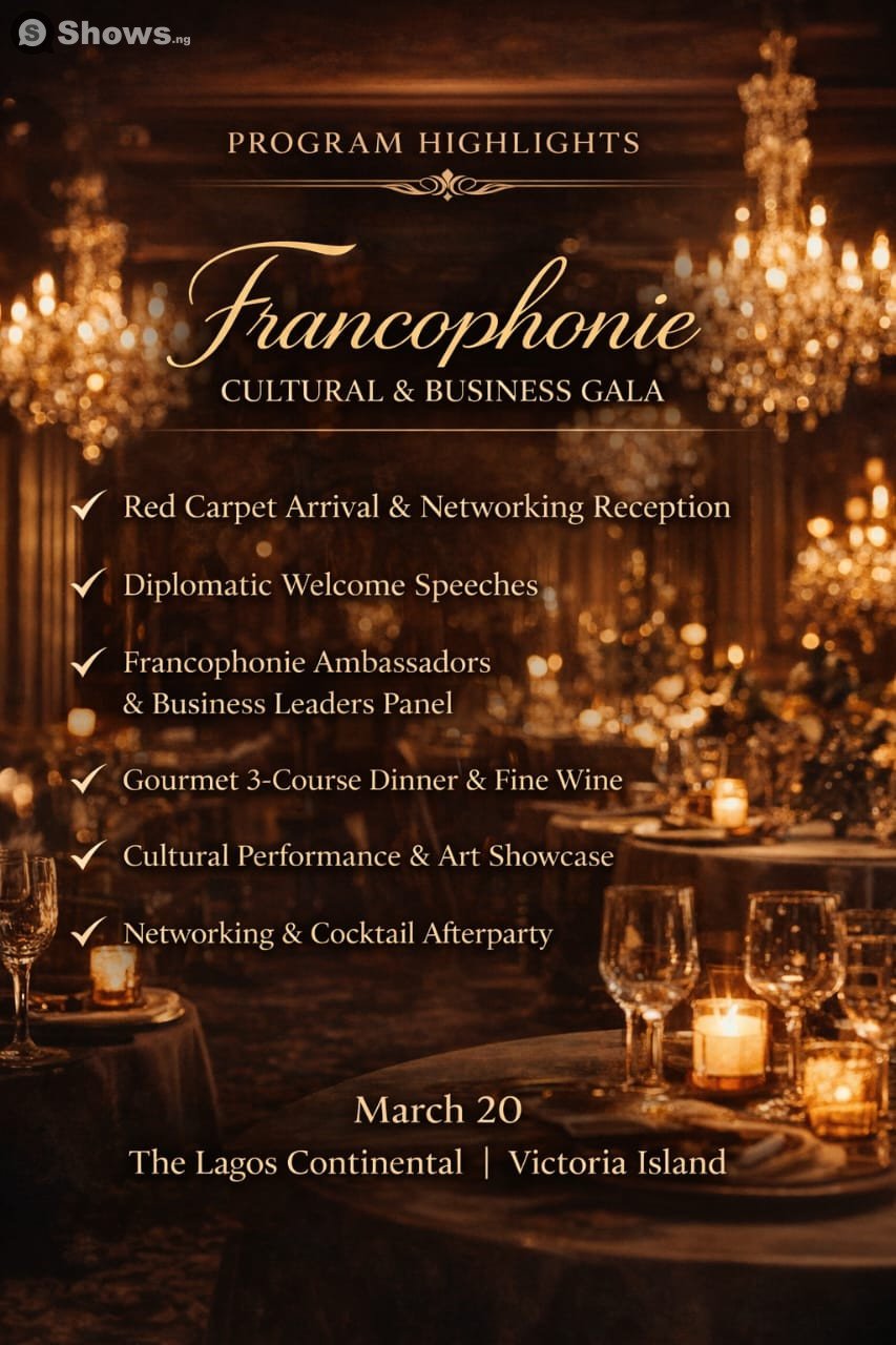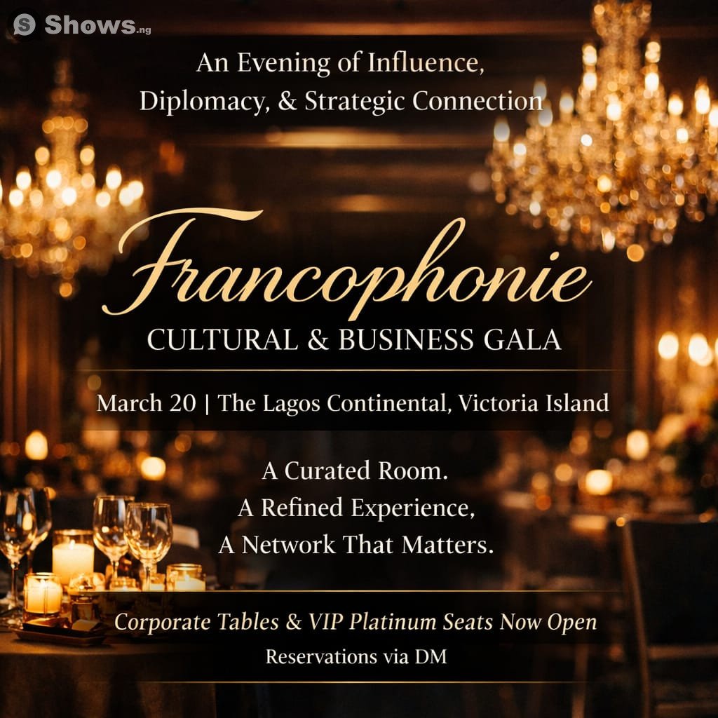 Welcome to Francophonie Festival & VIP Gala Night — a standout moment you won’t want to miss. This isn’t just another business event—it's a curated environment for professionals to meet, ideate, and move industries forward. Expect a mix of strategic insight, networking opportunities, and actionable takeaways. Whether you're scaling up, starting out, or just exploring, this event welcomes thinkers and doers alike. Mark your calendar—Thursday, March 19, 2026 is when it happens. Be sure to arrive by 7:00 PM. The event is happening at The Lagos Continental Hotel, located at Victoria Island, Lagos. This business is built with intention, energy, and something truly special. Come ready for an experience that will stay with you long after it's over.