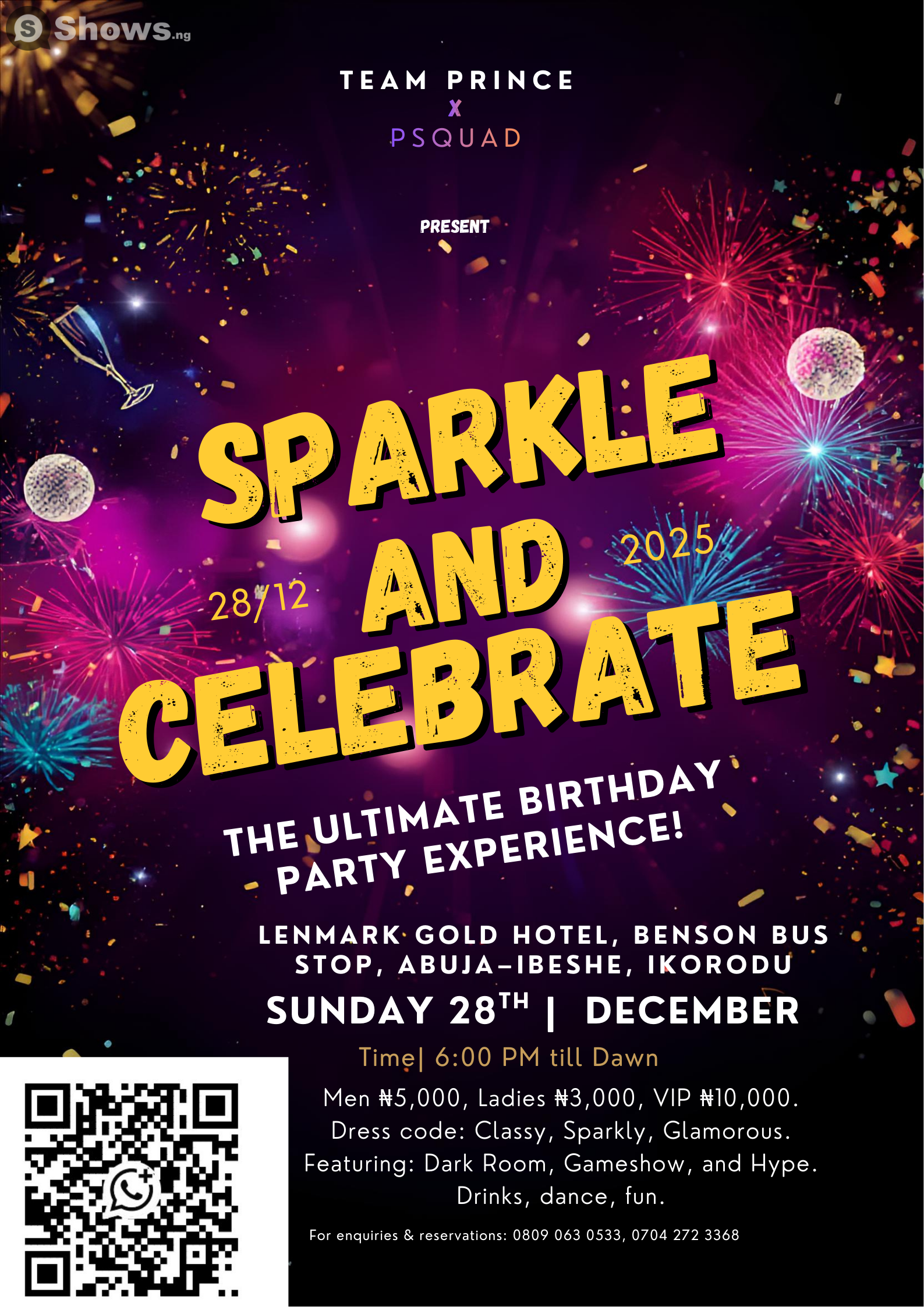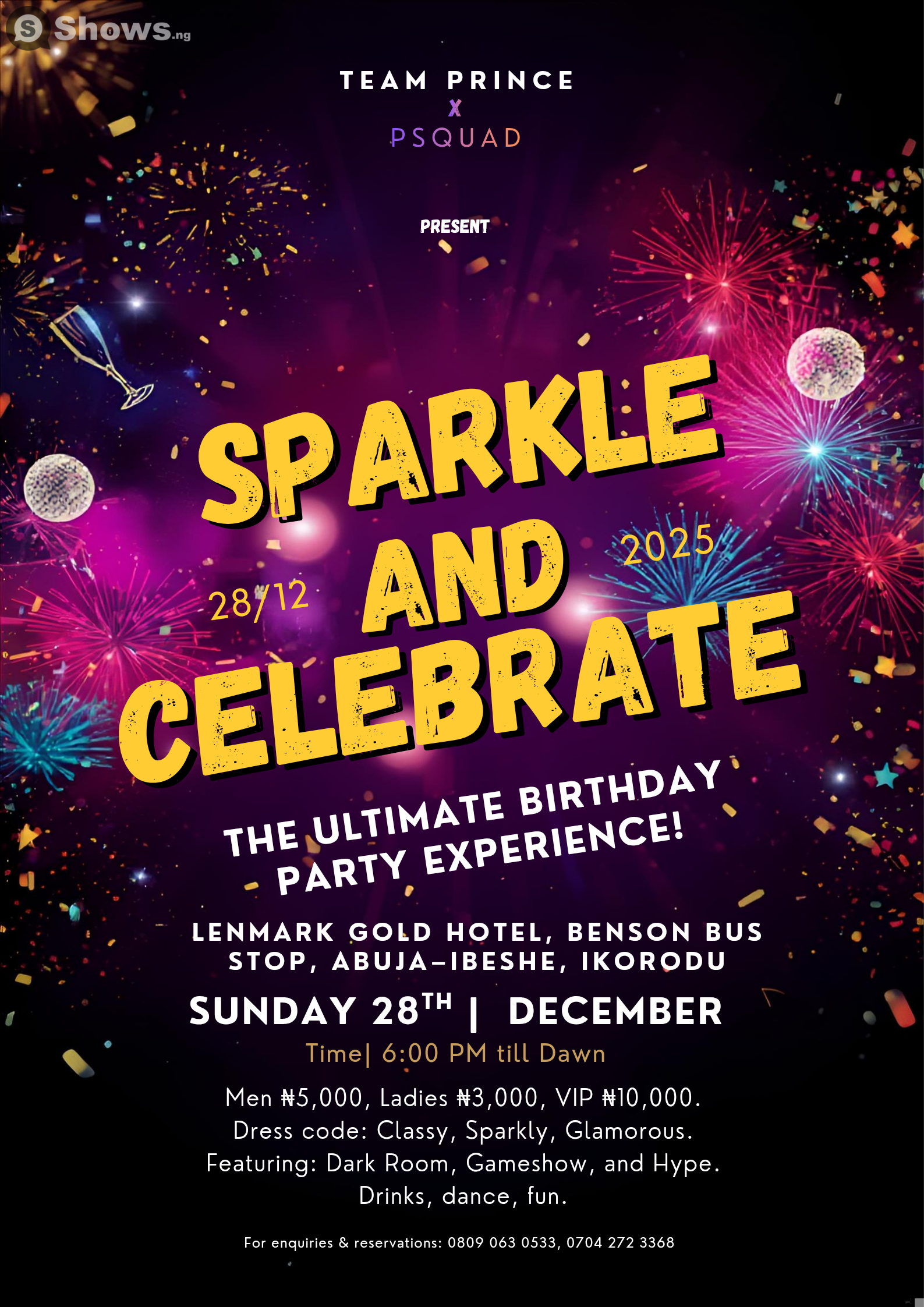 Welcome to SPARKLE AND CELEBRATE — a standout moment you won’t want to miss. This is more than candles and cake—it's a celebration of life, growth, and gratitude. Come raise a glass to milestones met, memories made, and moments still to come. Surrounded by laughter, gifts, and great people, this birthday will be one for the books. Mark your calendar—Sunday, December 28, 2025 is when it happens. Be sure to arrive by 6:00 PM. The event is happening at Lenmark Gold Hotel , located at Benson Busstop Abuja Ibeshe Road, Ikorodu . This birthdays is built with intention, energy, and something truly special. Come ready for an experience that will stay with you long after it's over.