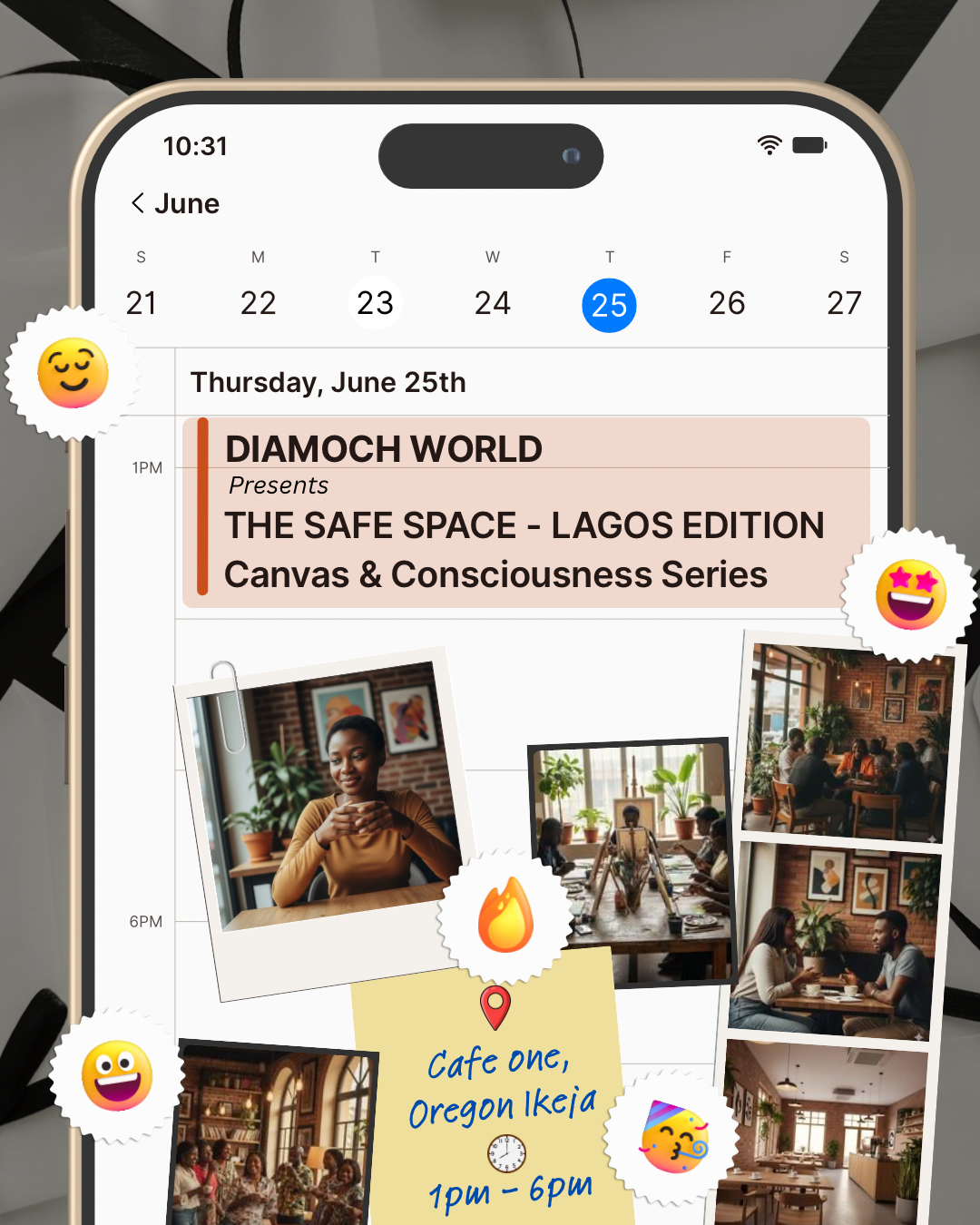 The Safe Space event is designed for adults aged 18+ a relaxed environment where art, food, music, and meaningful conversation come together. It is a place to share your voice, find your community, express yourself, connect with others, and recharge. We unwind to cool music, enjoy light vibes, and take part in fun, interactive games that encourage connection and ease. The event aims to: Promote mental wellness and emotional resilience Provide education on healthy coping mechanisms Networking and meeting like minded individuals