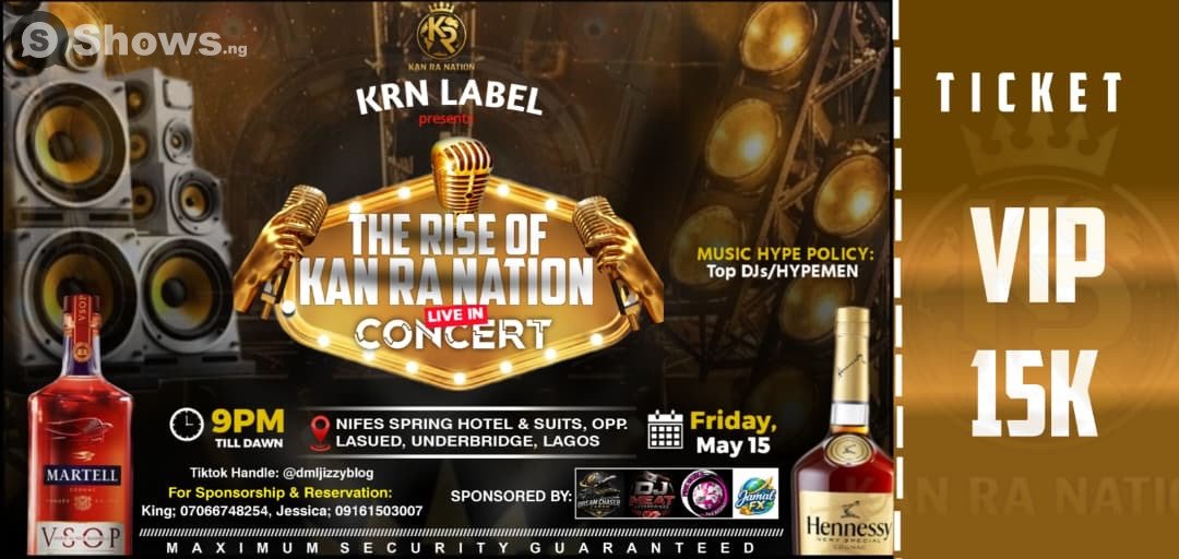 Welcome to The Rise Of Kan Ra Nation Live In Concert - a standout moment you won’t want to miss. Lose yourself in a soundscape curated for dreamers, dancers, and diehard music fans. From electrifying headliners to underground gems, this is the kind of lineup people talk about long after the lights go down. Whether you’re swaying under the stars or headbanging by the front stage, the energy will be unforgettable. Save the date: Friday, May 15, 2026. Things get started around 9:00 PM. The event is happening at Nifes Spring Hotel & Suits, located at Opp Lasued Under Bridge, Badagry Express Way, Lagos, Nigeria , Lagos. This music is built with intention, energy, and something truly special. Come ready for an experience that will stay with you long after it's over.